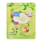Indulge in the taste of tropical paradise any time of the year with our Great Value Toasted Coconut Chips. When you add these toasted coconut chips to your daily snack routine. your tastebuds will feel as though they are being carried away to a remote island in every bite. The exotic taste of this coconut can be enjoyed by itself. chopped up in a yogurt parfait with granola. or added to your favorite trail mix for a bright and exciting flavor elevation. Conveniently packaged in a resealable bag. this ready-to-eat snack is perfect for on-the-go convenience. with three grams of fiber per serving and zero grams of cholesterol. you can feel good knowing that you and your family are enjoying a tasty and healthy snack. Find tropical relaxation in every bag of our Great Value Toasted Coconut Chips.